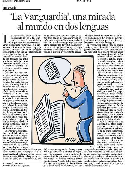 El presidente-editor de La Vanguardia, Javier Godó, ha anunciado este domingo en las páginas del diario la aparición de la edición en catalán de La Vanguardia para el próximo mes de mayo.